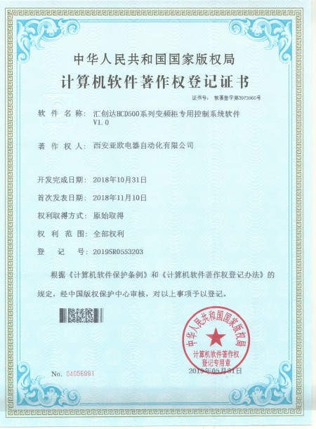- 关于我们 - 资质荣誉 - 汇创达HCD500系列变频柜专用控制系统软件