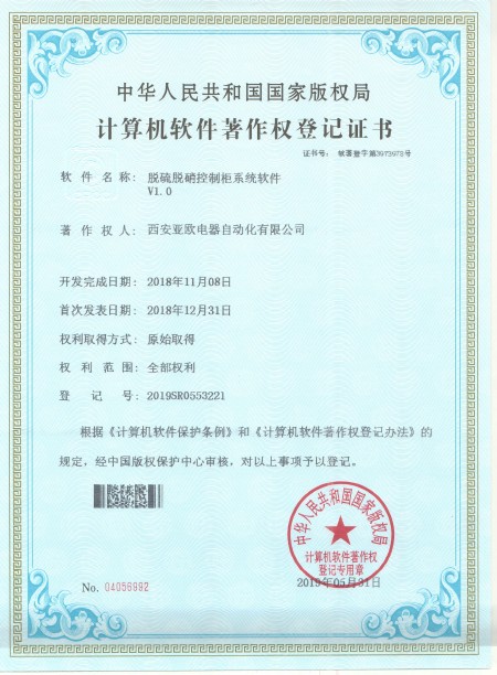 - 关于我们 - 资质荣誉 - 脱硫脱硝控制柜系统软件