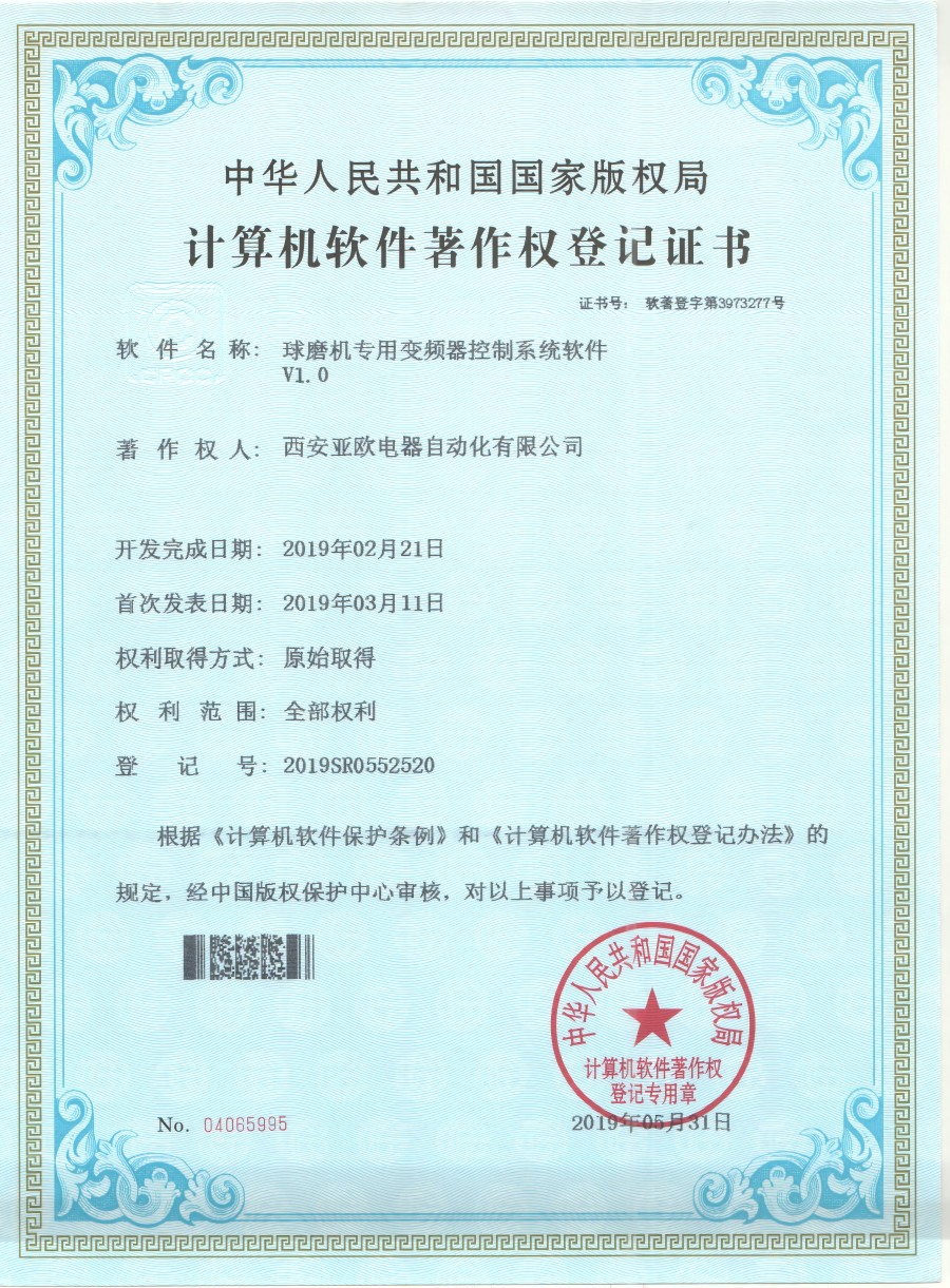 球磨机专用变频器软件著作-西安亚欧电气设备集团有限公司 | 西安高压成套开关柜 | 西安低压成套开关柜 | 西安箱式变电站 | 陕科配件 | 汇创达变频器 | 陕西变频器一体机 | 陕西变频器维修