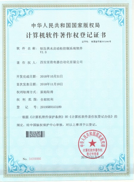- 关于我们 - 资质荣誉 - 恒压供水启动柜控制系统软件